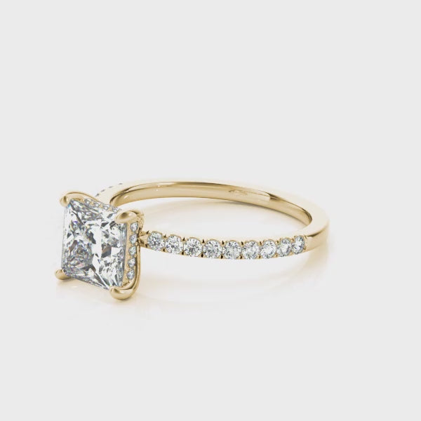 Princess Cut Hidden Halo Engagement Ring - Lab Grown Diamond 1.015 Carat